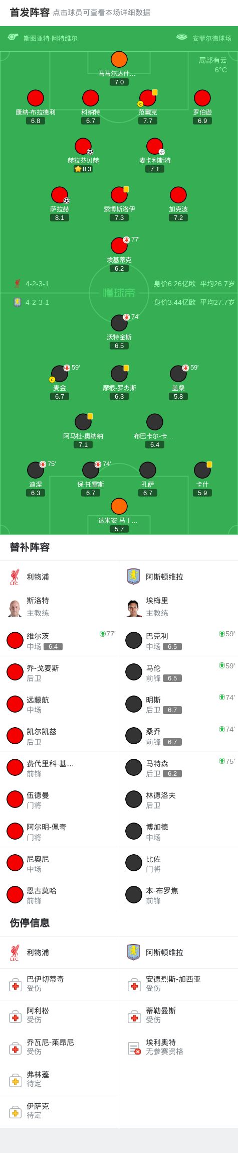 北京时间11月2日,英格兰足球超级联赛第10轮,利物浦坐镇主场迎战阿斯顿维拉。上半场,大马丁送礼,萨拉赫破门。下半场,赫拉芬贝赫远射,皮球击中维拉球员折射入网。全场比赛结束,利物浦2-0战胜维拉,终结了自身连败颓势。