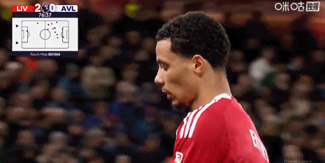 第45+2分钟,大马丁出球失误,萨拉赫破门,利物浦1-0